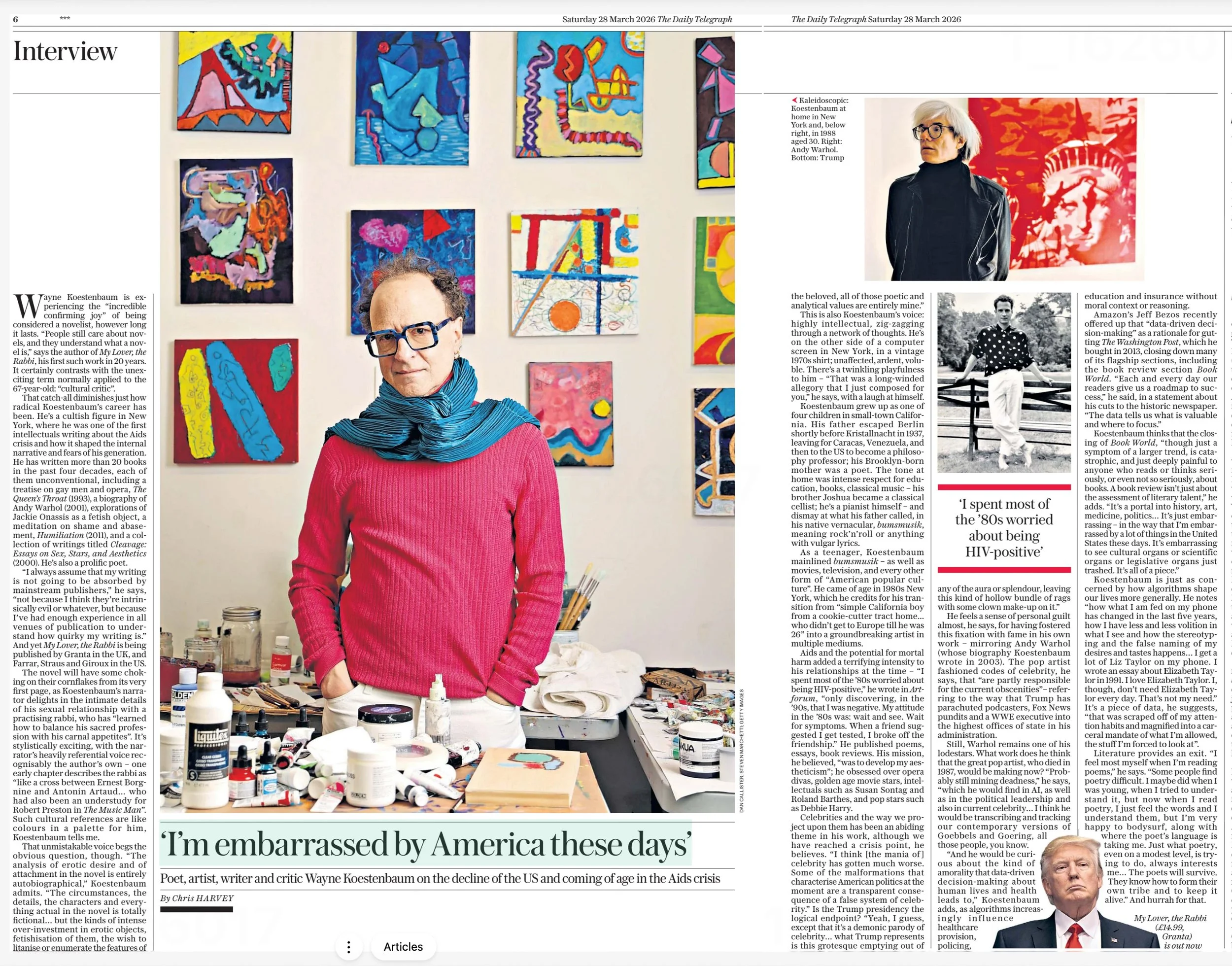 A portrait shoot with Wayne Koestenbaum in his New York City studio. Wayne is an American artist, poet, and author. He has published over 20 books to date.
